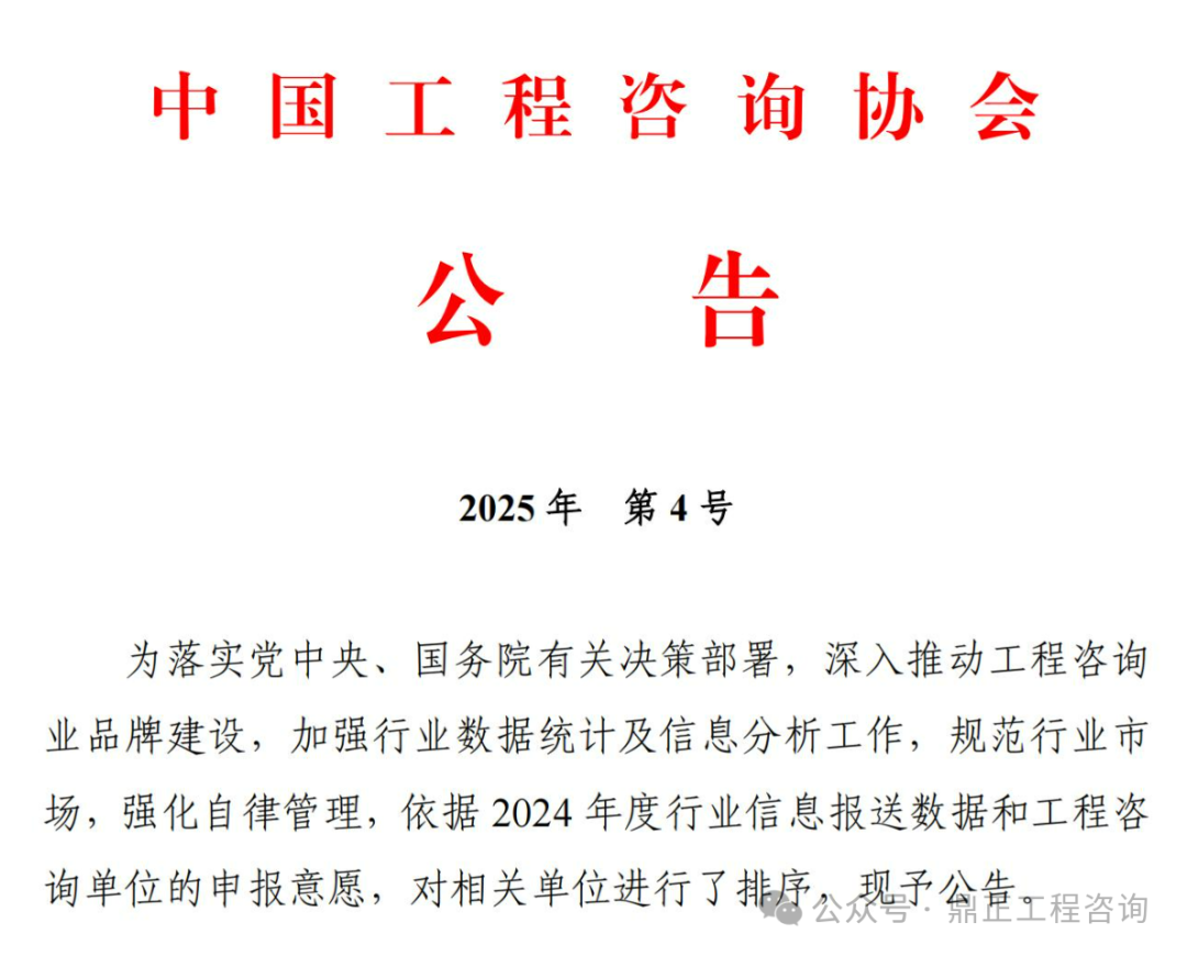 近年来,随着行业的快速发展,市场竞争日益激烈。为规范行业竞争行为,强化行业自律,2021年中咨协会发布了《工程咨询单位排名办法(试行)》并开展了行业排名工作。该工作旨在响应国家品牌建设要求,展现行业实力与风采、提升行业公信力,充分发挥行业领军企业的引领示范作用。至今,中咨协会已连续第五年向社会公开发布“工程咨询单位排序”榜单,其权威性和行业影响力日益增强。