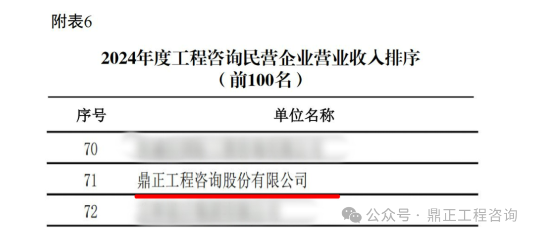 为进一步推动工程咨询行业品牌建设,规范行业行为、提高自律管理,8月21日,中国工程咨询协会在官网发布了关于2024年度工程咨询单位排序的公告。鼎正凭借稳健的经营实力和综合表现,同时荣登两项百强榜单,位列“2024工程咨询单位营业收入中型企业100强”第57位,以及“2024工程咨询单位民营企业营业收入100强”第71位!