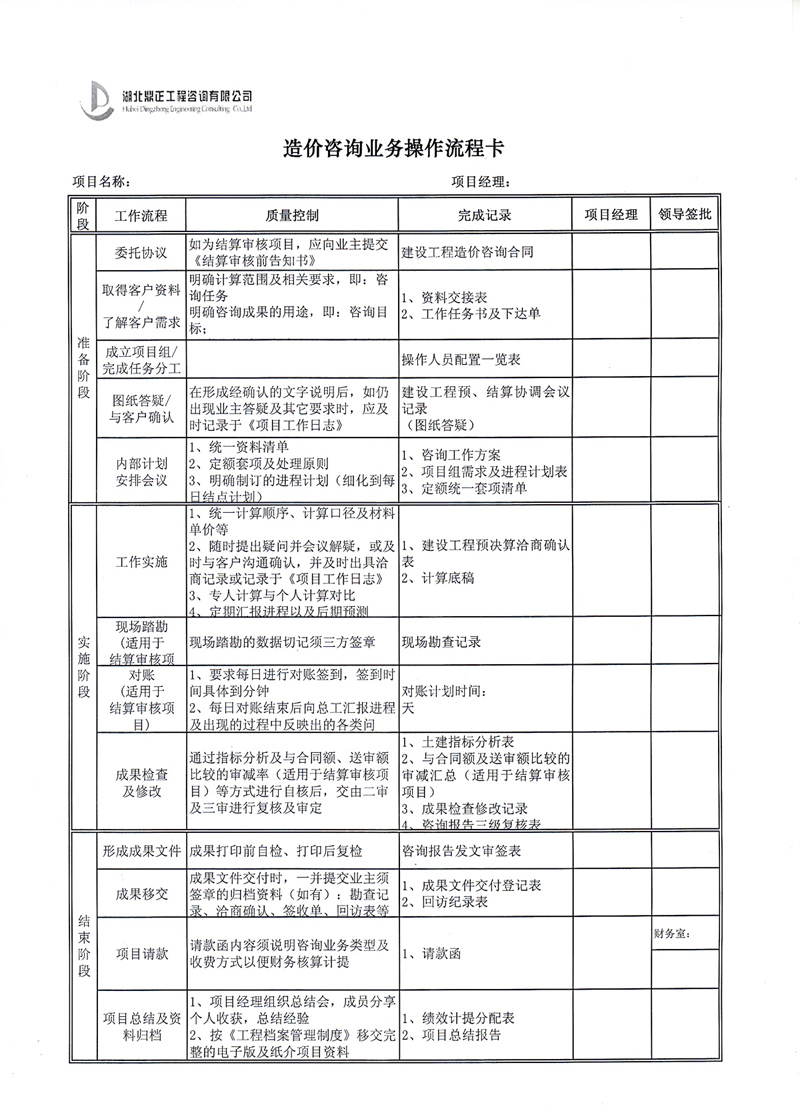 造价咨询业务操作流程卡